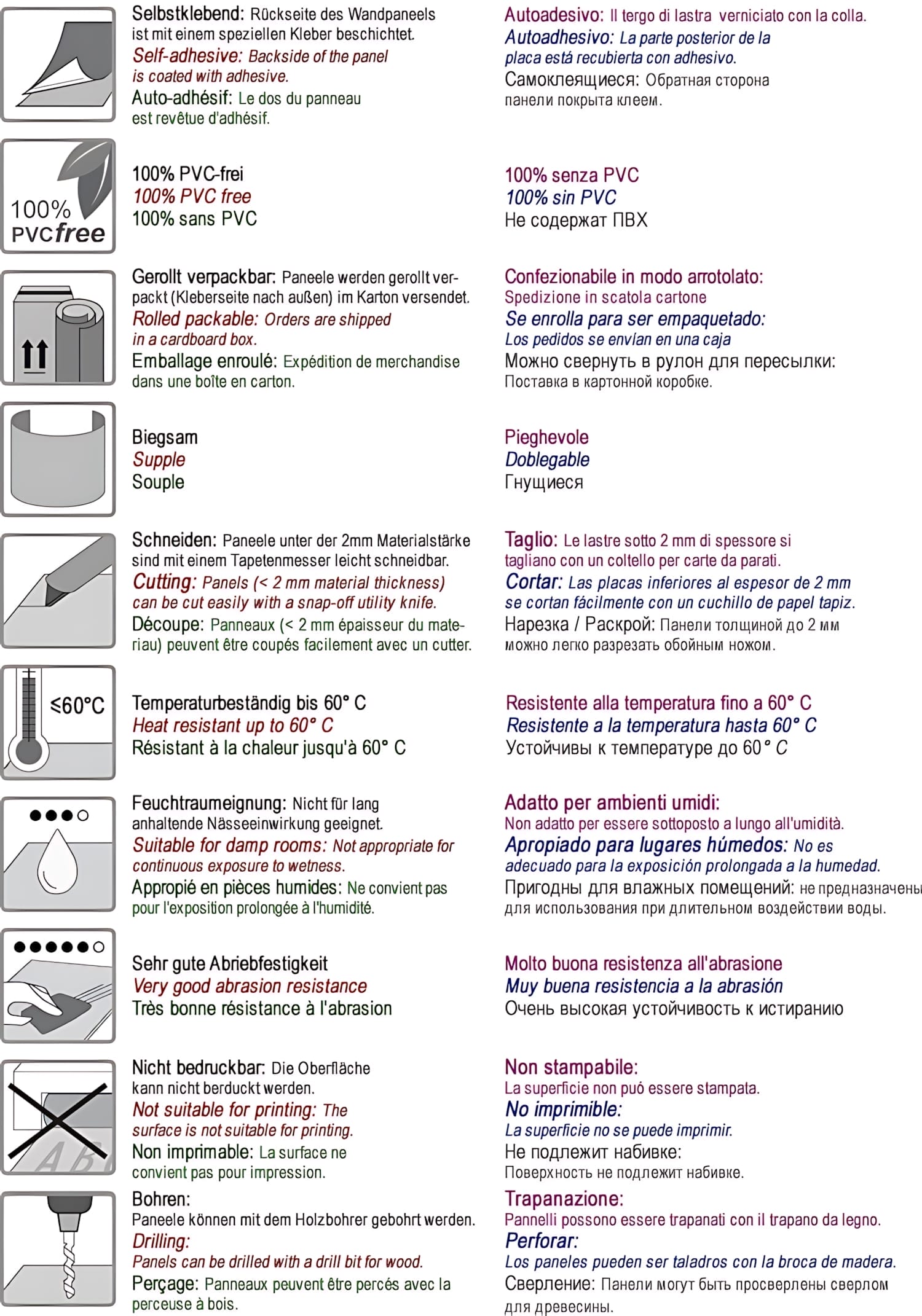 abriebfeste Speziallackierung (PET-Lack), 100% PVC frei