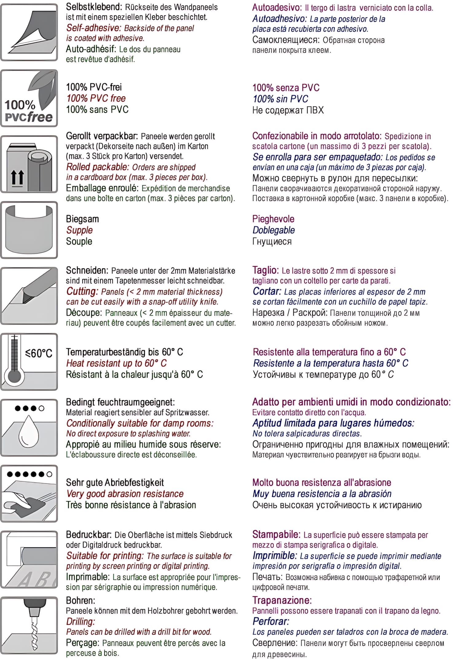 abriebfeste Speziallackierung (PET-Lack), 100% PVC frei